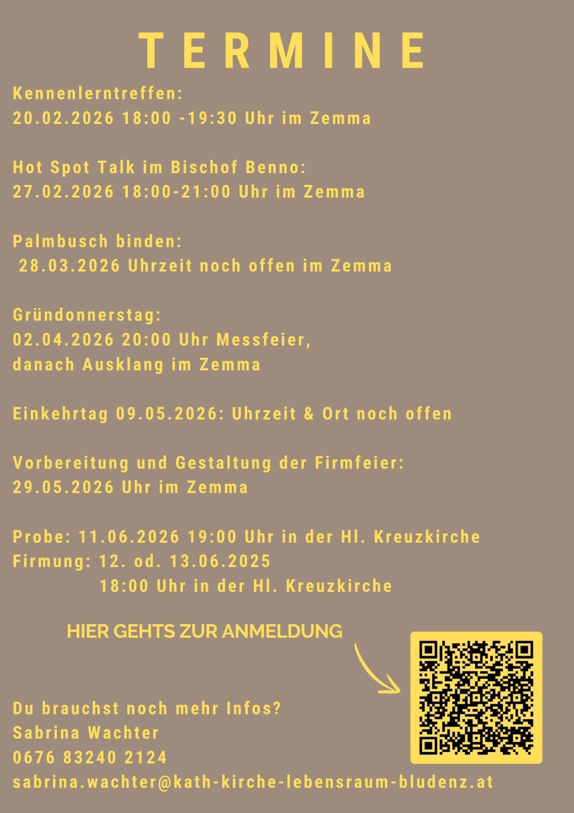 Die Anmeldung zur Firmvorbereitung 2026 ist bis zum 15.2.2026 über den Anmeldelink unten oder den QR-Code auf der linken Seite möglich.