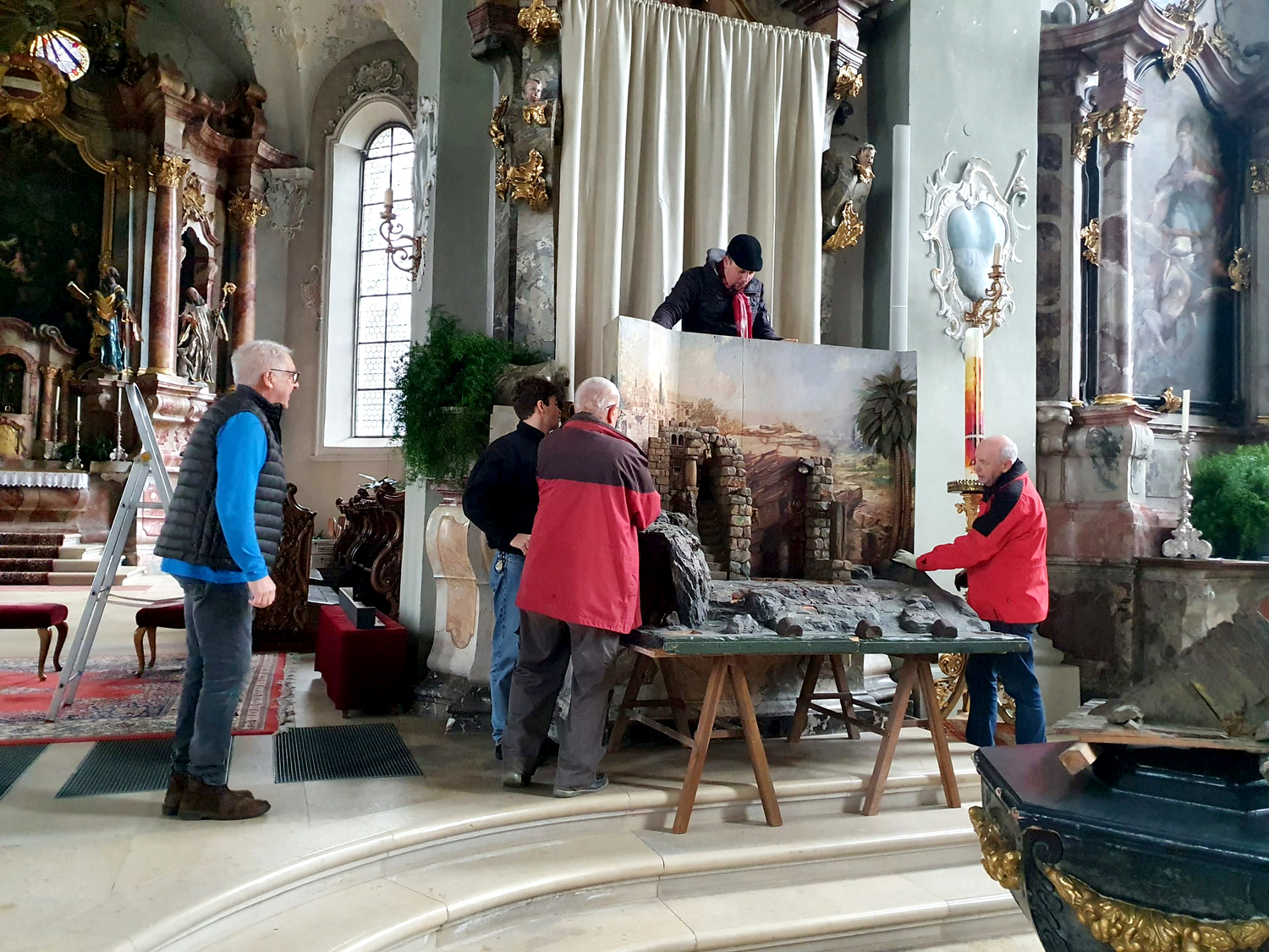 Unser „Mädchen für alles“, Martin Ilg, tatsächlich ein Alleskönner, bewerkstelligt alle diese Aufgaben – zum Teil unterstützt von einem kleinen Team. Wenn in der Kirche, im Pfarrhaus bzw. Pfarrheim eine Lampe auszutauschen ist oder ein Fenster klemmt oder ein Rollladen hängt, Martin ist immer zur Stelle.