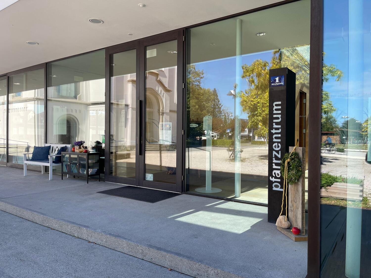 Im Pfarrzentrum befinden sich auch das Pfarrsekretariat und die Büros der hauptamtlichen Mitarbeiter:innen.