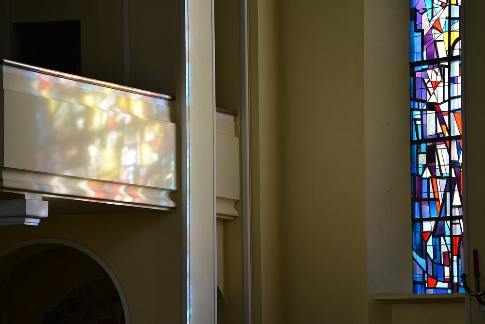 Bregenz, Pfarrkirche Mariahilf, Glasfenster Leopold Fetz, Lichtspiel