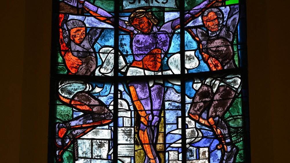 Fenster im Altarraum nach Entwurf von Clemens Holzmeister