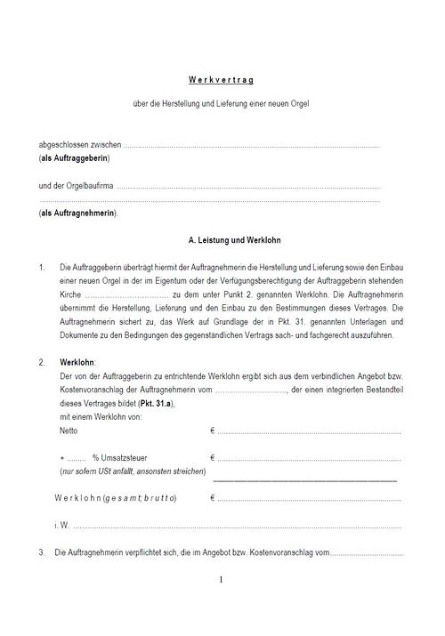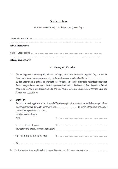 Orgelmustervertrag Instandsetzung Österreich